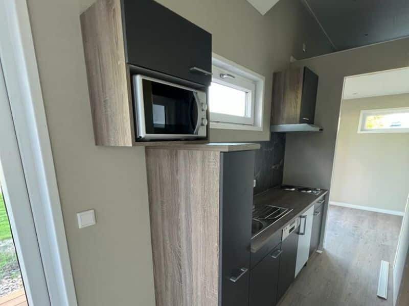 Kiest u voor dit Tiny House dan kiest u voor een compleet Tiny House van hoge kwaliteit met een snelle levertijd. Bovendien is dit Tiny House licht in gewicht, door de grote raampartijen, voor zien van hoogrendement glas, geniet u optimaal van natuurlijk daglicht. De hoge afwerkingskwaliteit zorgt voor een luxe en comfortabel gevoel.