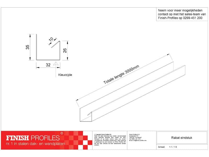 Het Rabat Eindstuk is de kers op de taart voor een perfecte afwerking van uw gevelbekleding, specifiek ontworpen voor onze Rabat wandbeplating. Het is belangrijk op te merken dat dit eindstuk exclusief geschikt is voor Rabat wandbeplating en niet compatibel is met onze andere dak- en wandbekledingen.