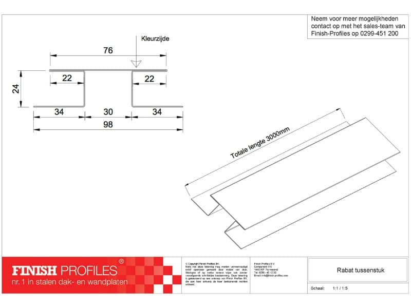 Het Rabat Koppelstuk is verkrijgbaar in diverse kleuren. Om een harmonieuze afwerking te realiseren, raden we aan om het koppelstuk in dezelfde kleur te bestellen als uw gevelbekleding. Zo bereikt u een optimaal visueel resultaat. Houd er rekening mee dat dit product standaard per drie meter wordt geleverd, wat betekent dat maatwerk niet mogelijk is. Zorg er daarom voor dat u de juiste lengte bestelt om tekorten te voorkomen.
