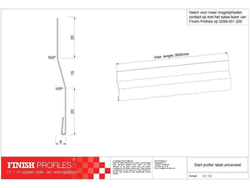 Let op: dit specifieke profiel is exclusief geschikt voor onze Rabat wandbeplating en is niet compatibel met andere dak- en wandbekledingen. Het kan echter gebruikt worden in combinatie met zowel het Holland Rabat als ons eigen Finish Rabat.