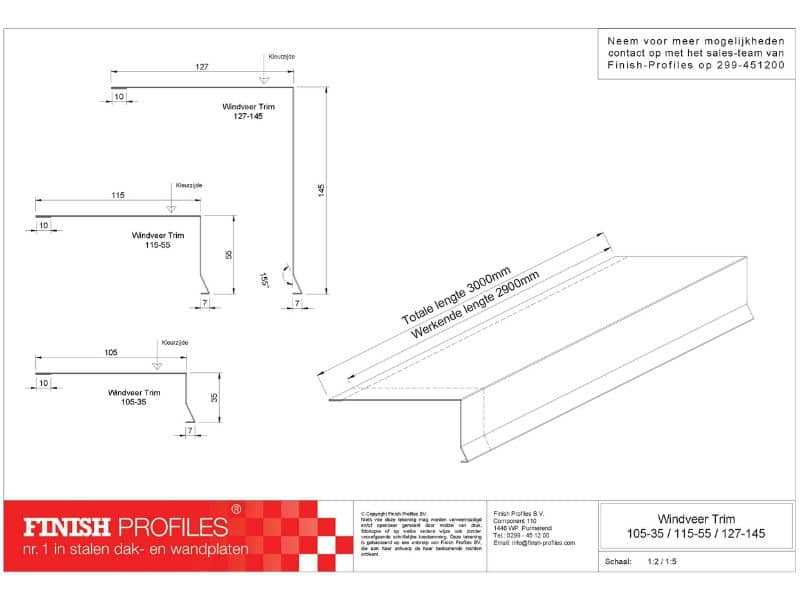 Windveren bij Finish Profiles kunt u bestellen in de volgende afmetingen: